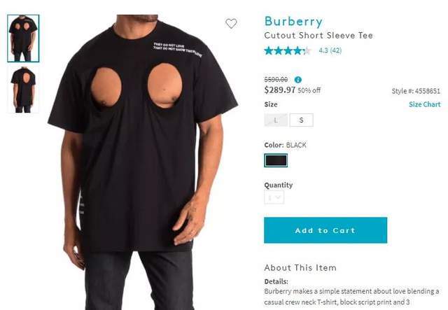 博柏利(Burberry),就曾發布過一件驚世駭俗的“露點”T恤,被譽為“好男不包二奶”裝。