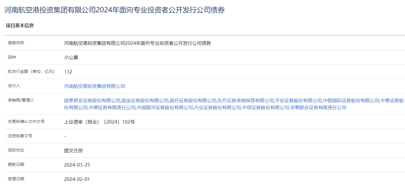 【年夜河包養行情財立方新聞】3月25日,河南航空港投資團體無限公司2024年面向專門研究投資者公然刊行公司債券已提交注冊。